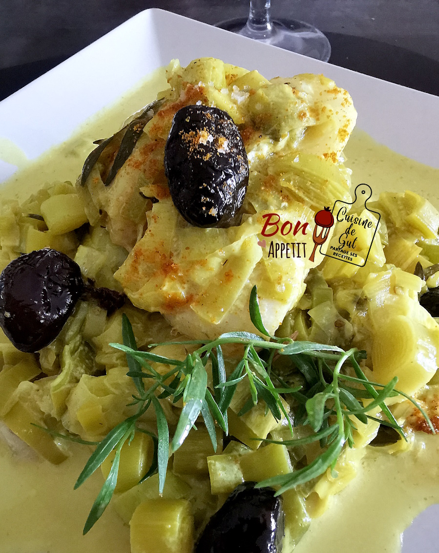 Cabillaud poireaux sauce coco aux épices et estragon