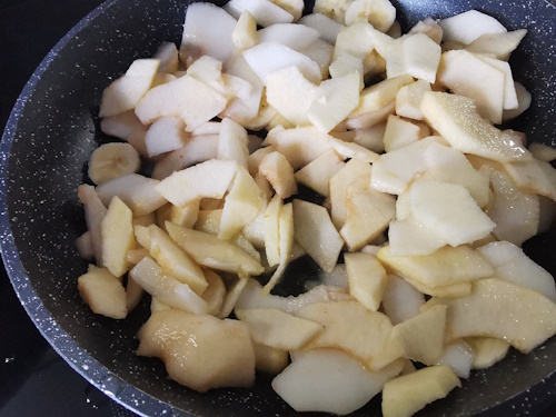 • Remuer le tout délicatement et laisser cuire à petit feu jusqu’à ce qu’il n’y ait pratiquement plus de liquide et que les fruits soient caramélisés.