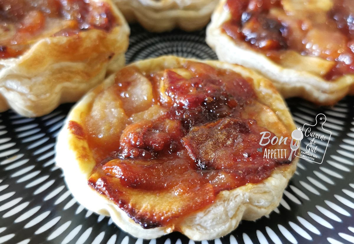 MON AVIS : Je savais que ce serait excellent !! Nous ales avons dégustées tièdes et le feuilleté était ainsi à son apogée, qui en plus s’était laissé aller à même sortir des moules pour certaines tartelettes. Mes fruits caramélisés et bien parfumés à souhait, j’ai vraiment apprécié cette tartelette avec mon petit café croyez moi !