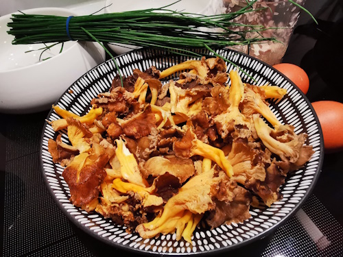 Il n’y a pas si longtemps que je fais ce champignon, faisant plus souvent des girolles, mais tu vois en fait je les préfère, c’est une belle découverte ! n’hésite pas si tu en trouves. Il y a des jaunes et des grises. Moi je prends des jaunes, je ne sais pas si le goût des grises diffère ?