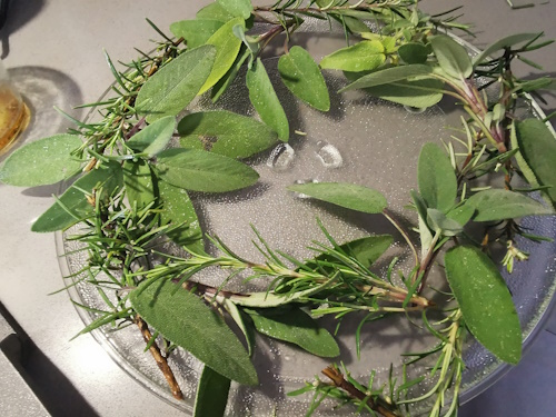 Prévoir des branches de ROMARIN, DE SAUGE, ou éventuellement du GUI