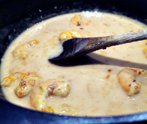Comme c’est curieux tout le même les goûts ! Tu aimes le poulet et pas les crevettes et moi c’est l’inverse. J’irais même jusqu’à dire que je déteste le poulet et que je raffole des crevettes !! Sinon oui ce plat était super, j’ai adoré cette sauce que je referais même sans l’orange. Ce vin m’a bien plu en sauce ! Merci Irisa. gros bisous
