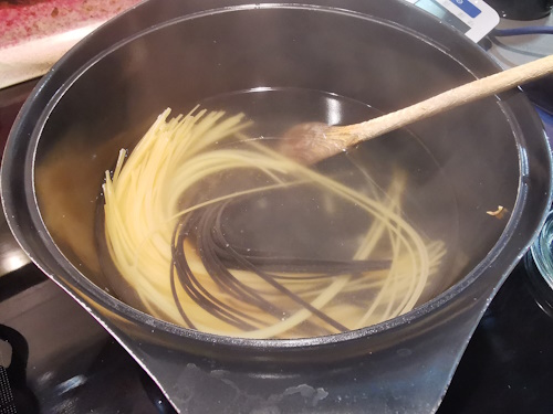 1/2 mesure de Linguines ou spaghetti à l’encre de seiche pour 2 personnes
