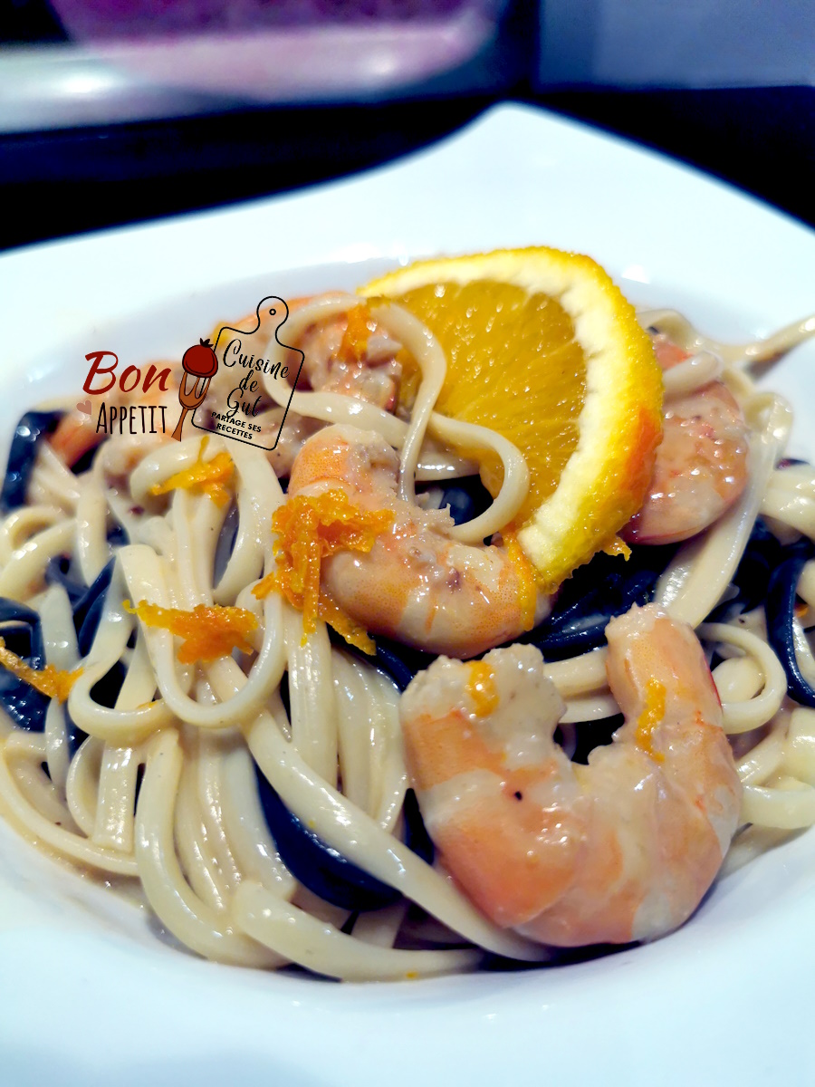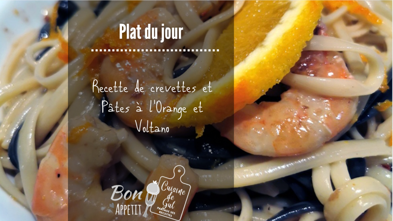 Recette de crevettes, Pâtes à l’Orange et Voltano