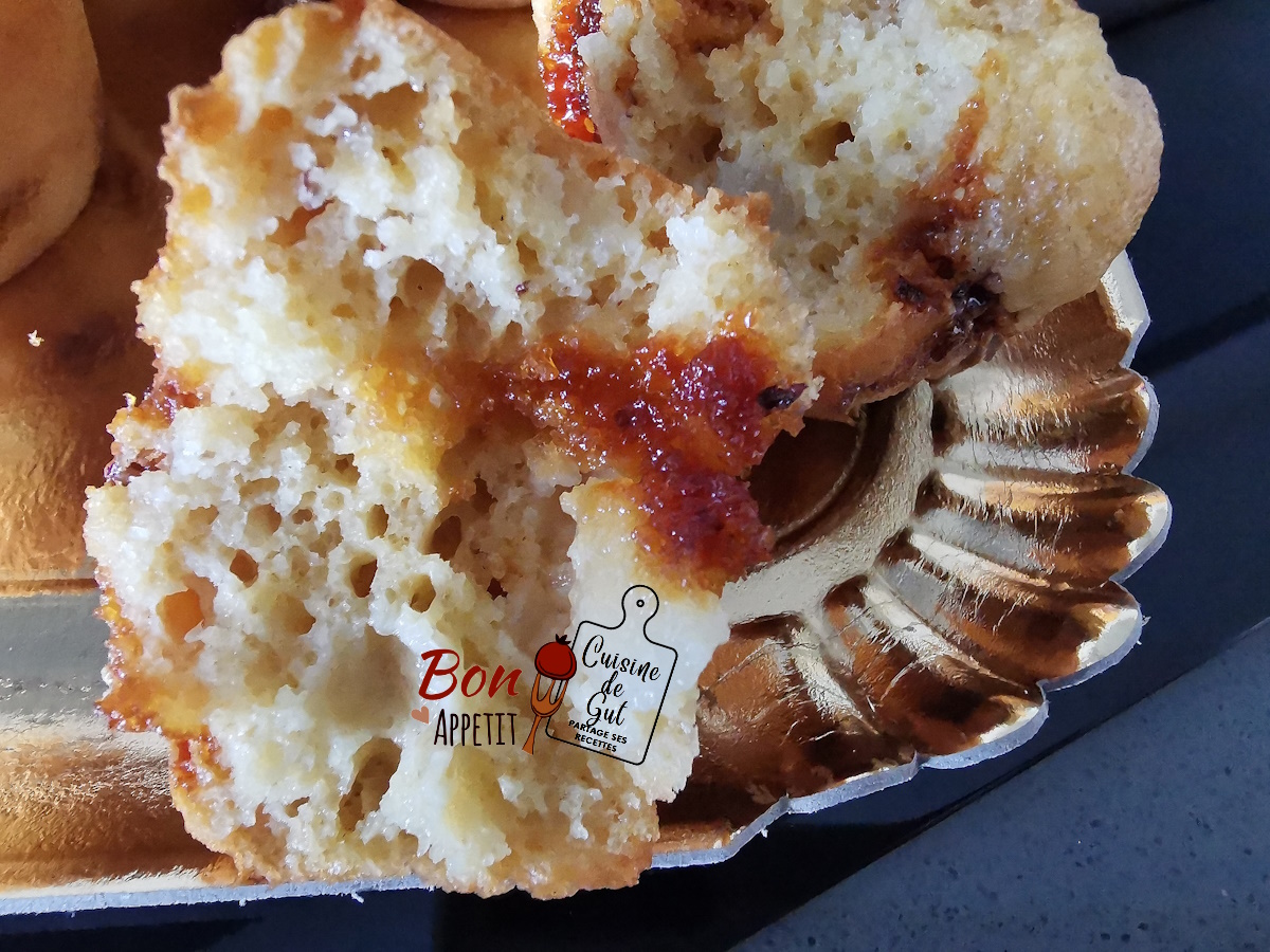 Oui c’est pourquoi j’ai pris en photo l’intérieur. Moelleux dedans et croustillants avec le pralin c’était bien bon. Merci Amélie, gros bisous