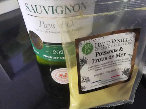 - Préparer un bouillon avec 75 cl d’eau bouillante et 3 cuillères à soupe de fumet de poisson. Réserver