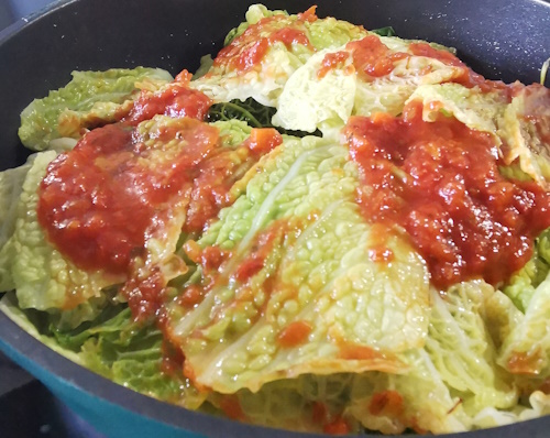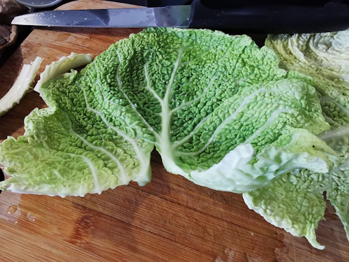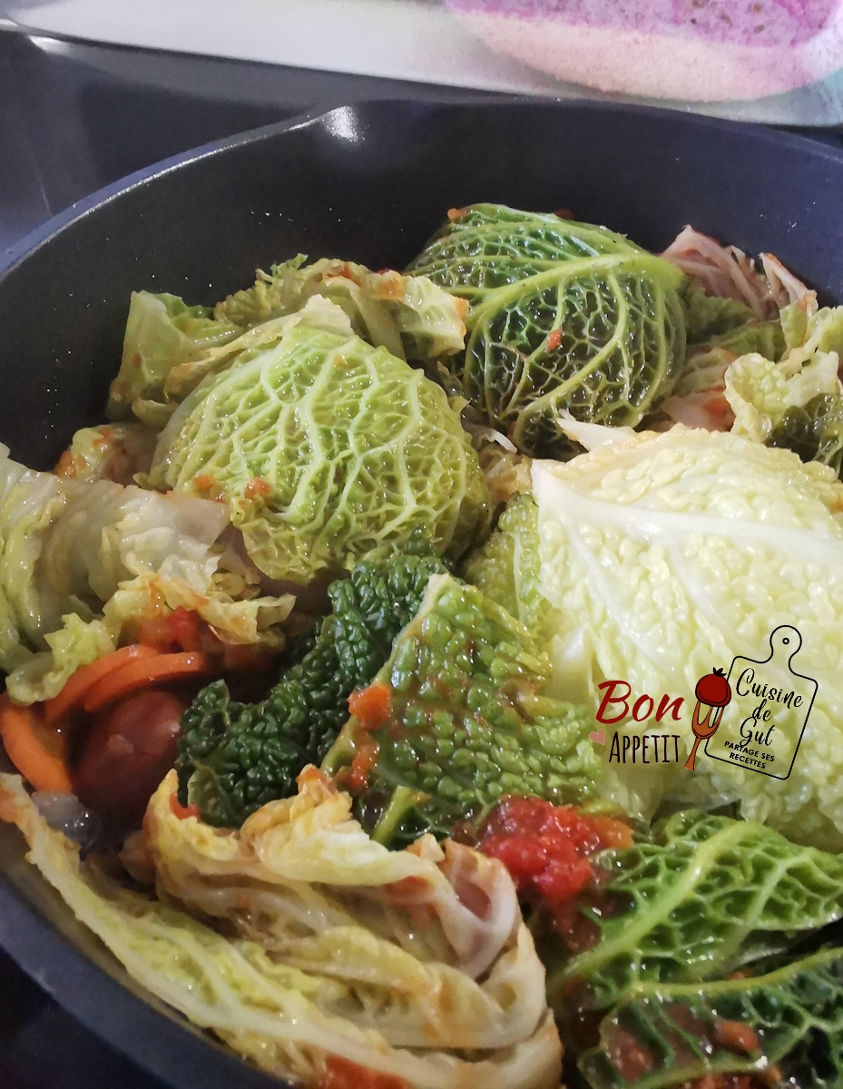 • Couper les autres feuilles de chou en 3 ou quatre et les ajouter au plat au fur et à mesure