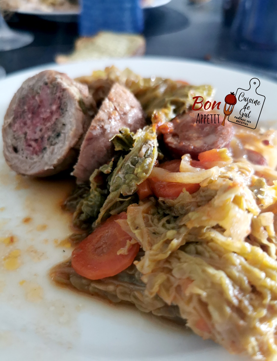 Avec la bière les saveurs sont différentes, ça marche super bien avec le chou. J’ai bien aimé et c’est même à refaire. Ces petites paupiettes de veau ont une super petite farce (là aussi je suis difficile) et la saveur diot fumé ont bien complété la saveur de ce plat. Merci Viviane, gros bisous