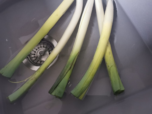- Bien nettoyer les poireaux, couper la base pour ouvrir un peu le poireau et le débarrasser de la terre éventuelle