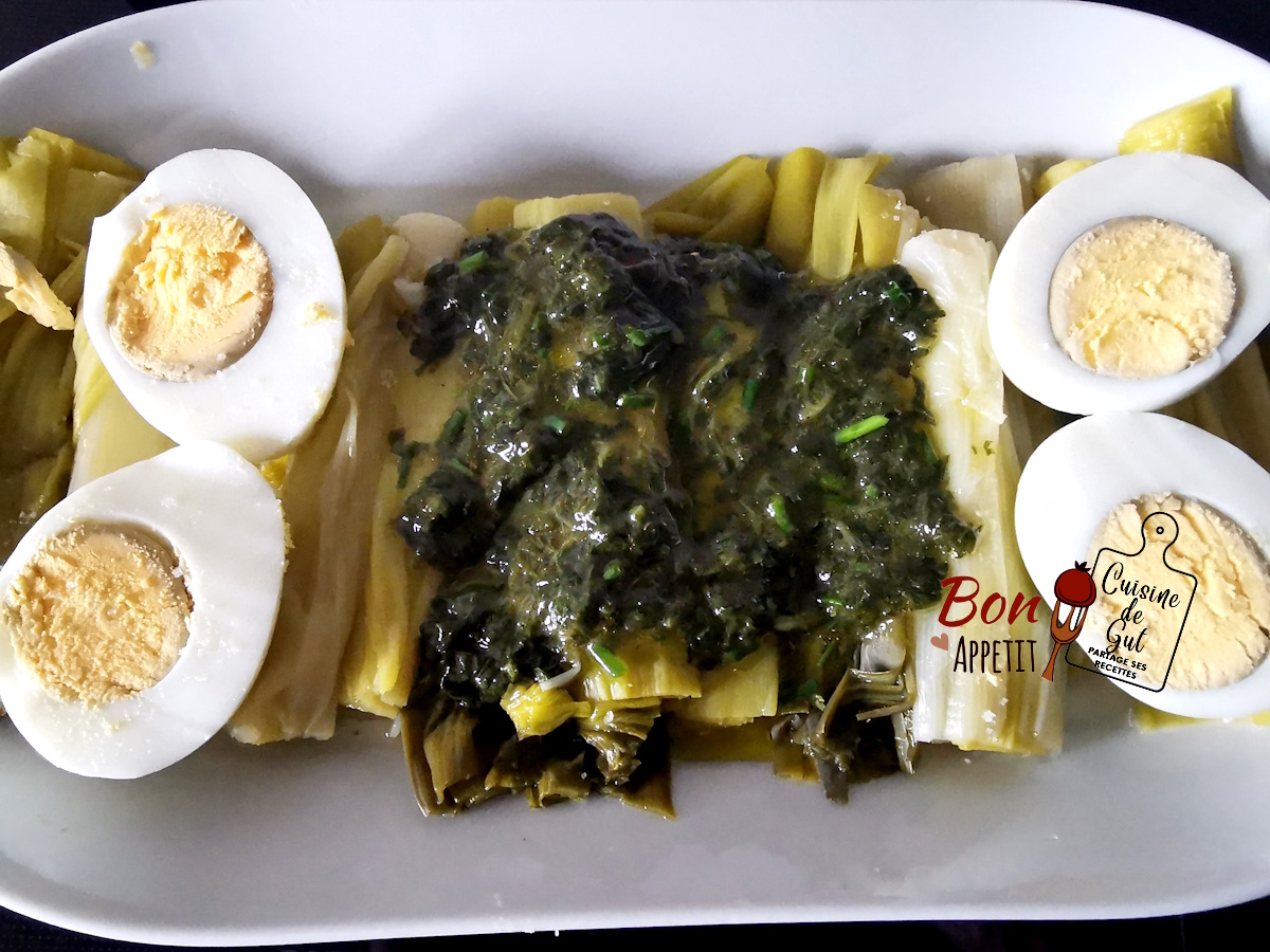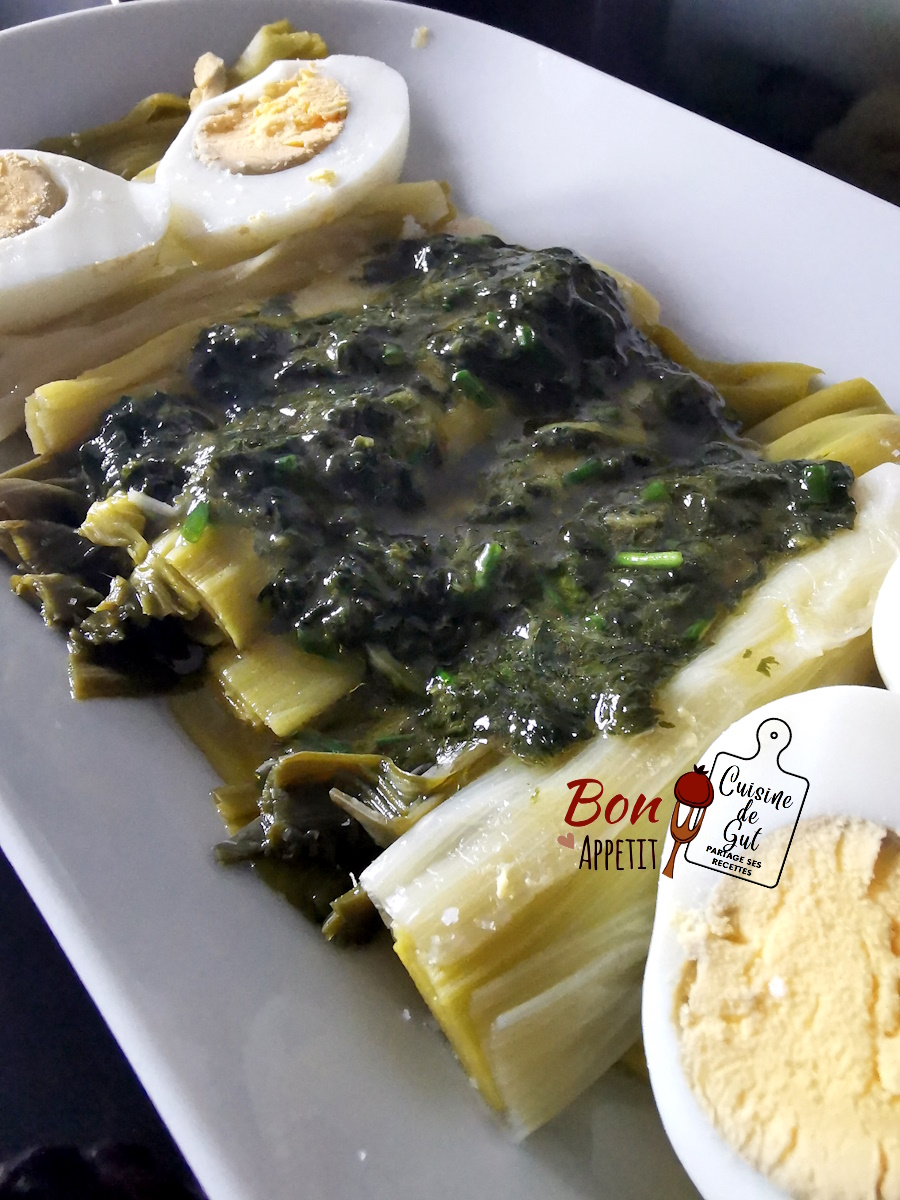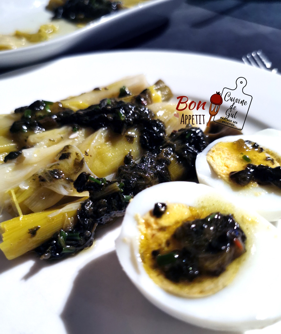 - Couper les oeufs en deux après les avoir écaler et les ajouter sur les poireaux