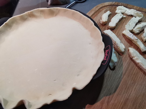 J’en oublie peut être d’autres alors pardon si c’est le cas. En fait nous achetons plutôt du Brie ou du Coulommiers au lait cru qui sont toujours un gros moment dégustation, plutôt que le camembert qui lui n’est pas très souvent à notre goût. Alors pourquoi ne pas avoir fait de tarte avec un de ces 2 fromages ? Tout simplement parce qu’en général il ne m’en reste jamais assez lorsque je me décide à la faire. Ce jour là nous venions d’en acheter alors là je me suis dit c’est maintenant ou jamais !
