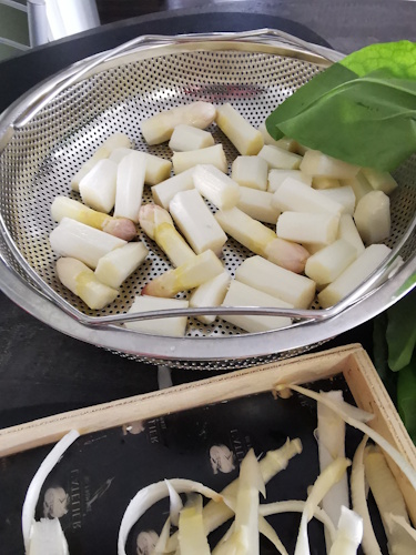 3- J’ai coupé mes asperges en tronçons mais il est également possible de les laisser entière, c’est à vous de voir !
