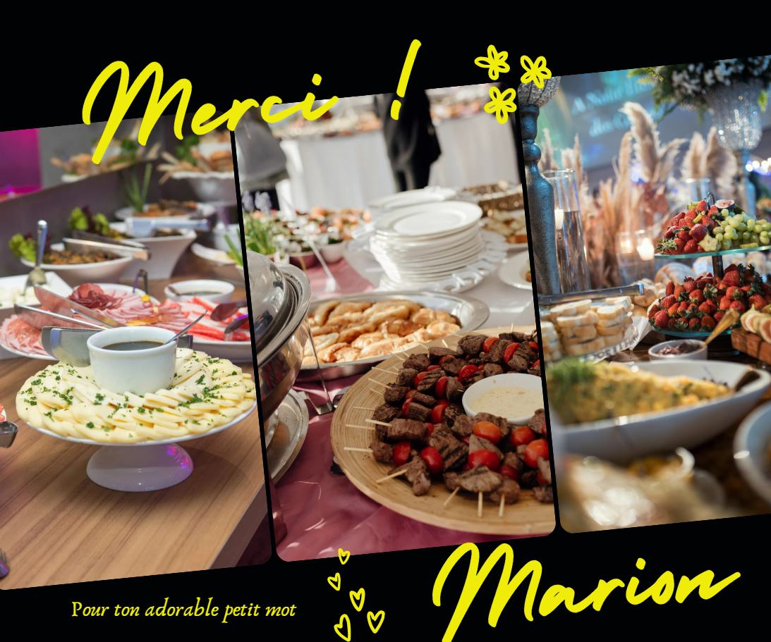• Oui Marion est vraiment adorable et elle se donne beaucoup de mal aussi bien pour cuisiner que pour présenter ses recettes. Je ne m’attendais toutefois pas à son gentil petit mot, ça m’a touchée et je voulais la remercier.