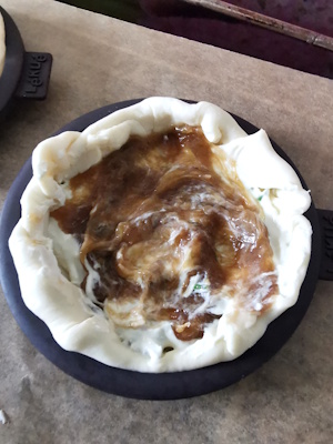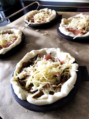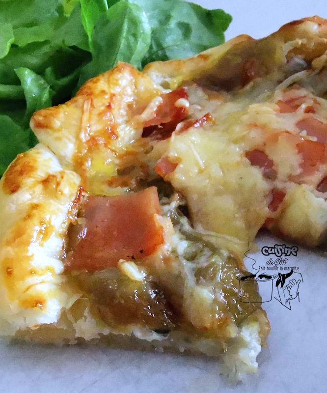 - Ajouter sur le tout un peu de comté râpé, badigeonner à l’aide d’un pinceau de jaune d’oeuf mélangé à un petit filet de lait