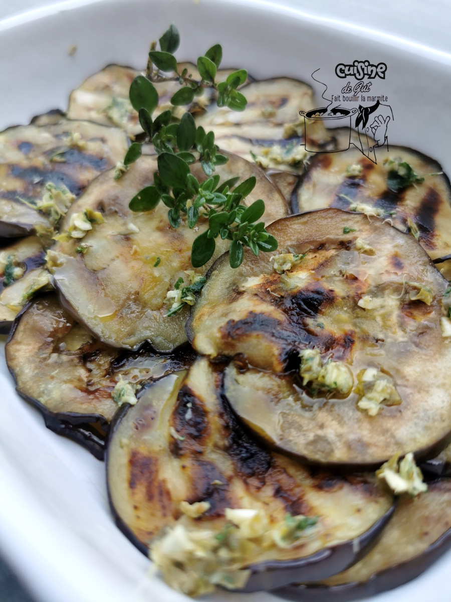 Aubergines grillées à la plancha pour antipasti ou plat.