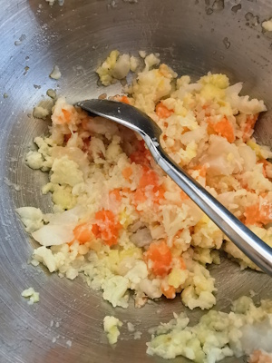 - Recommencer l’opération jusqu’à ce qu’il n’y ait plus de préparation chou fleur/poisson
