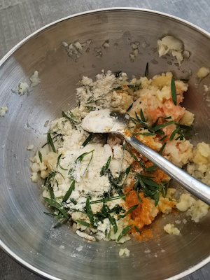 - Mettre la pomme de terre et le chou fleur dans un saladier. Ajouter les morceaux de poisson et écraser le tout avec une fourchette