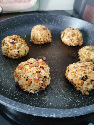 - Mettre un filet d’huile dans une poêle et cuire les croquettes sur toutes les faces jusqu’à ce qu’elles soient bien dorées.