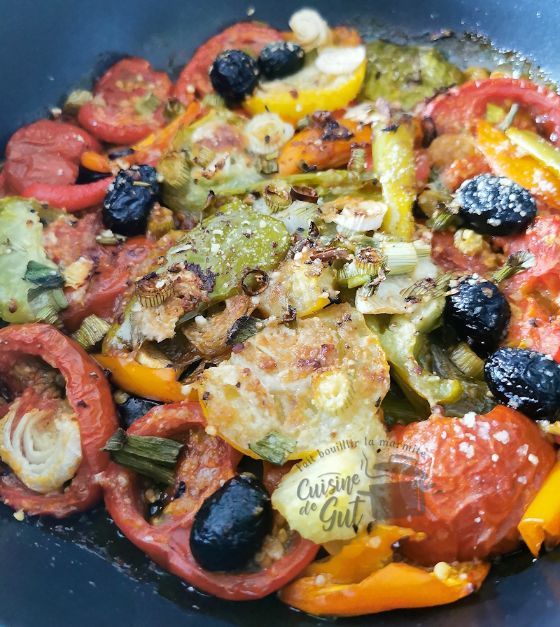 En tout ton plat a tout pour me plaire avec ces bons légumes du soleil et le parmesan. Lorsque je cuisine une ratatouille au four, je déguste le reste avec des pâtes ou bien du riz et ça me fait un repas gourmand et rapide.