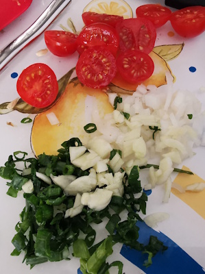 • Ajouter ensuite, des demies tomates, (lavées)