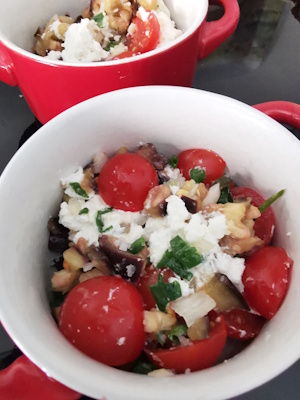 Je remplacerai les aubergines par des courgettes mais je vais tester un soir, j’ai encore quelques petites tomates au jardin, je vais en profiter.