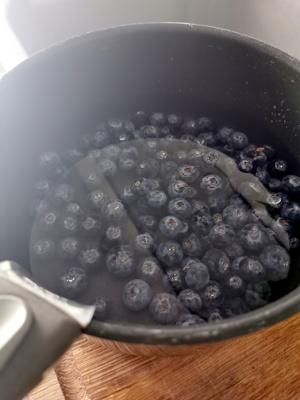 • Passer rapidement les myrtilles sous l’eau les éponger dans un Sopalin et les mettre dans une casserole