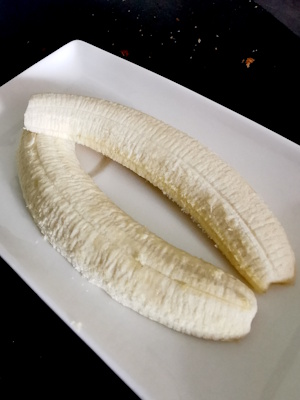 • Placer une banane coupée en deux dans chaque assiette.