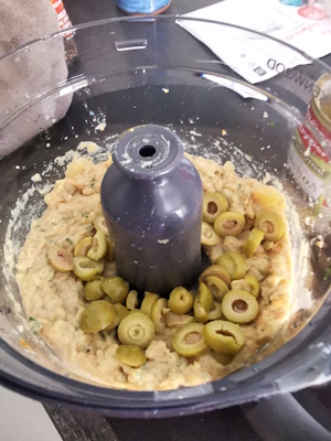 • Couper les olives en rondelles puis les ajouter à la précédente préparation.