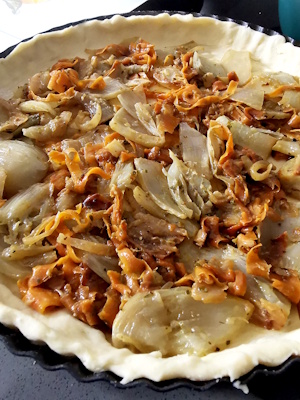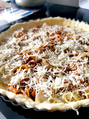 Je ne fais souvent en accompagnement d’un poisson ou d’une viande alors je me suis dit qu’en garniture de tarte ce devrait être très bon. C’était le cas !! merci Michèle, gros bisous