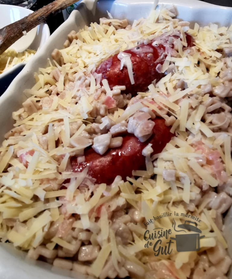 Hum quel beau plat, je suis fan de ces saucisses. La première fois que j’en ai mangées c’est pendant nos vacances à la montagne, alors cela me rappelle de bons souvenirs..Et avec ce gratin de crozet au Sarrazin, je ne peux que dire oui ..C’est trop bon