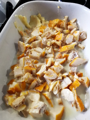 - Retirer la peau du haddock puis le couper en petits morceaux. Réserver