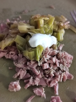 - Ajouter le poireaux et la crème, puis écraser le tout avec une fourchette jusqu’à obtenir quelque chose de facile à étaler.