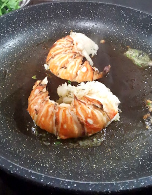 - Faire chauffer une poêle et lorsqu’elle est chaude ajouter les demies langoustes pour les faire griller