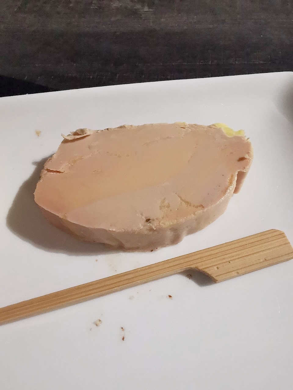 - Sortir le foie gras du frigo et en couper deux belles tranches.