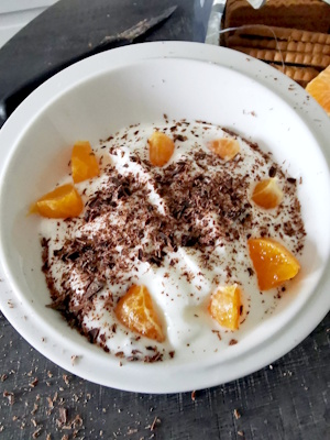 - Eplucher la clémentine, et séparer les quartiers. Les couper en morceaux puis les enfoncer dans le yaourt.