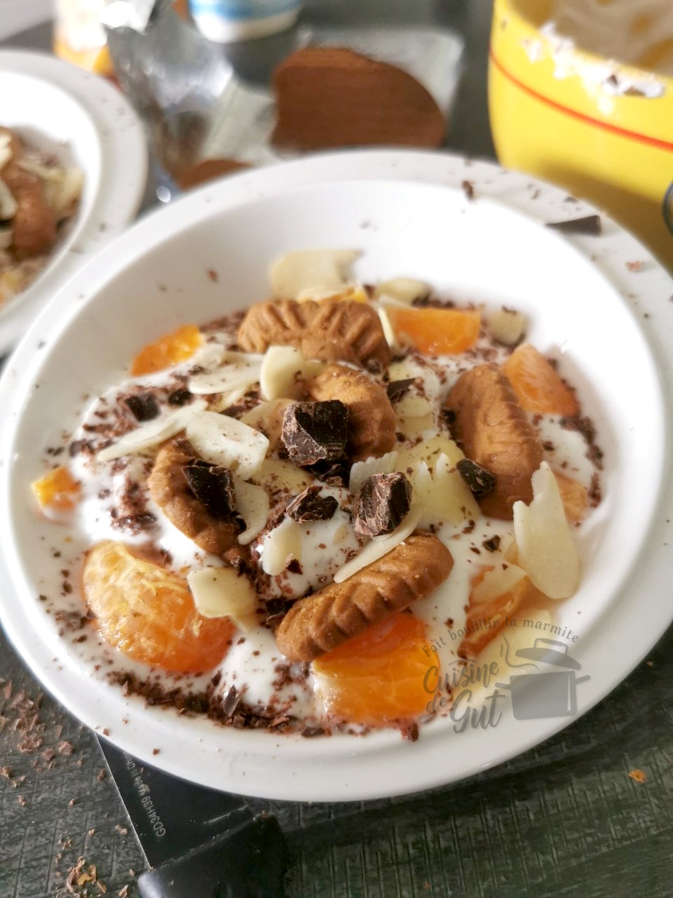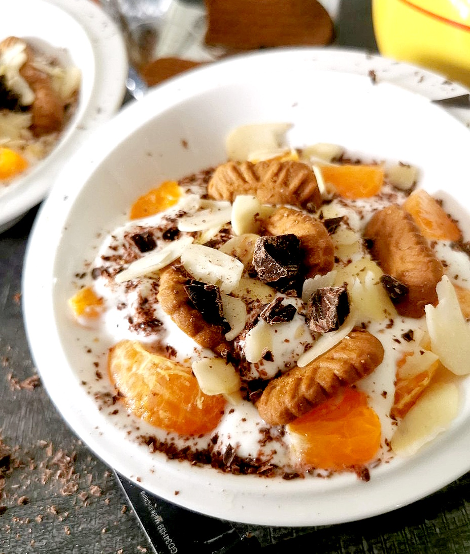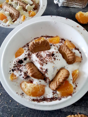 - Couper les spéculoos en deux et enfoncer les morceaux dans le yaourt.