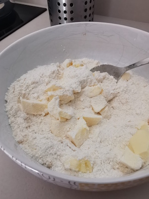 - Couper le beure en morceaux et les ajouter.