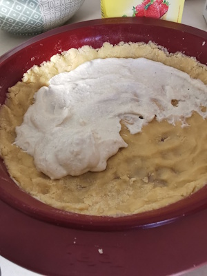 - Bien appuyer sur le fond avec les doigts et faire remonter la pâte sur les bords.