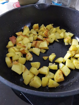 • Remuer et couvrir, laisser cuire jusqu’à ce que les pommes de terre soient tendres.