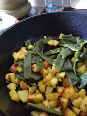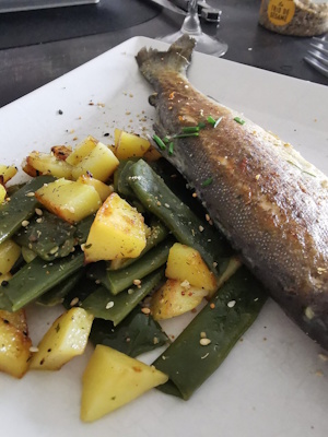 Poêlée d’haricots coco plats, pommes de terre sautées et truite sans sel