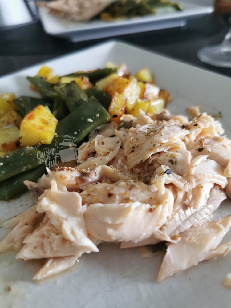 PLus que ravie de ce plat ! Entre la cuisson vapeur des haricots qui a révélé toute leur saveurs, ces bonnes petites patates et cette truite et le tout saupoudré de ce Gomasio, que j’appelerai Gomasio Libanais, je n’ai, non seulement même pas remarqué qu’il n’y avait pas de sel, mais en plus j’ai beaucoup aimé ce plat tel qu’il était bien parfumé. Un plat simple comme celui ci on en redemande !