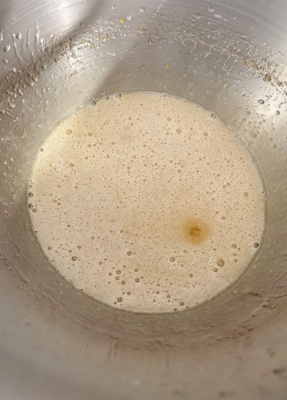 • Ajouter les oeufs et continuer de fouetter.