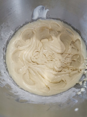 • Ajouter le yaourt grec puis ajouter la farine mélangée à la levure