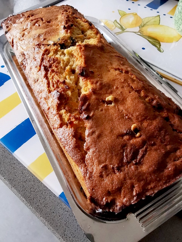 3- Comme toutes les pâtisseries il faut surveiller la cuisson. Si le cake est déjà bien doré mais pas encore bien cuit, ajouter une feuille d’alu pour le protéger