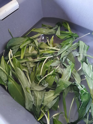 - Laver l’ail des ours. Couper toutes les queues pour ne garder que les feuilles