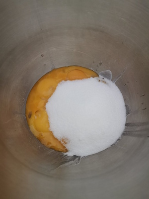 • Mélanger le sucre et les jaunes d’oeufs dans le bol du robot et mélanger à vitesse 4 jusqu’à ce que le mélange devienne blanc.