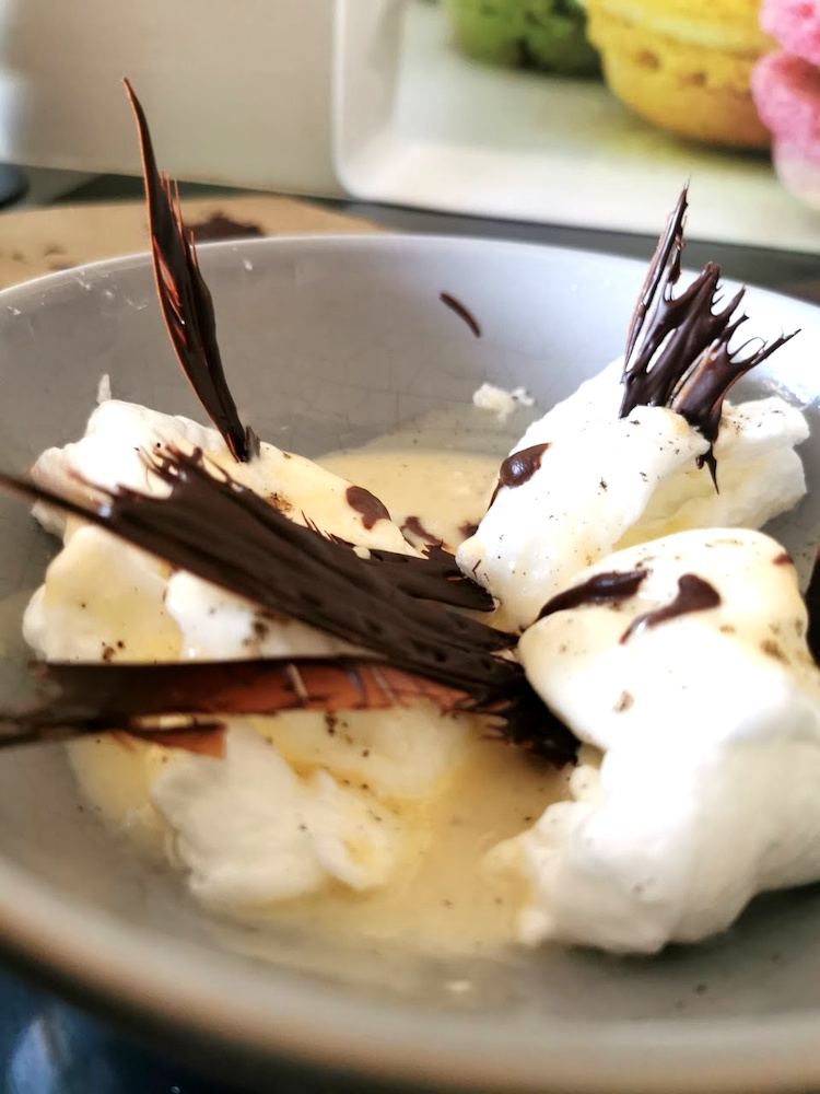 Ile flottante, plumes de chocolat au Cooking Chef