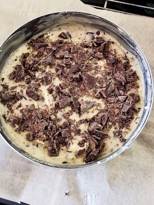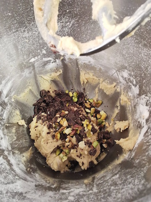 - Ajouter l’oeuf, le sucre vanillé et l’extrait de vanille. Ajouter la farine et la moitié du chocolat.