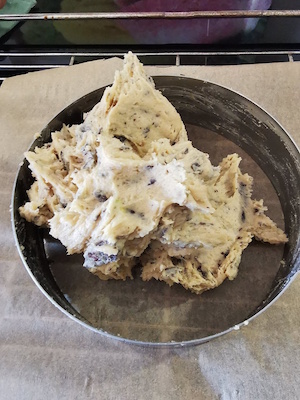 2- Il est difficile d’étaler la pâte dans le cercle car elle est très épaisse, pour vous aider mouiller une de vos mains et lisser la pâte avec, ça glissera beaucoup plus facilement