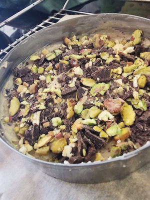 - Couper le chocolat au couteau et écraser les fruits secs. Mettre de côté.